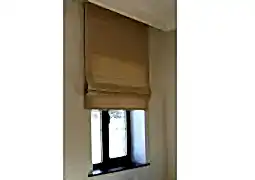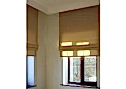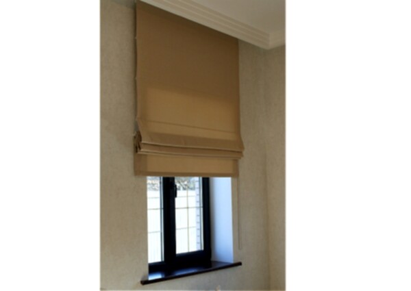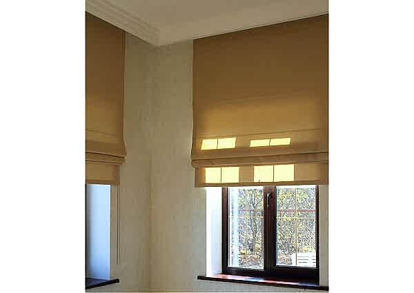 Стиль модерн не приемлет жалюзи. Лаконично декорировать окна можно римскими шторами. Грамотно подобранные ткани позволяют использовать римки в любых помещениях от офисов до жилых комнат. Фото иллюстрирует как бежево-желтые римки с чёткими ровными складками добавляют в монохромное практически белое пространство комнаты нотки теплоты и уюта.