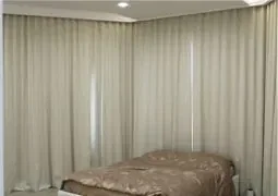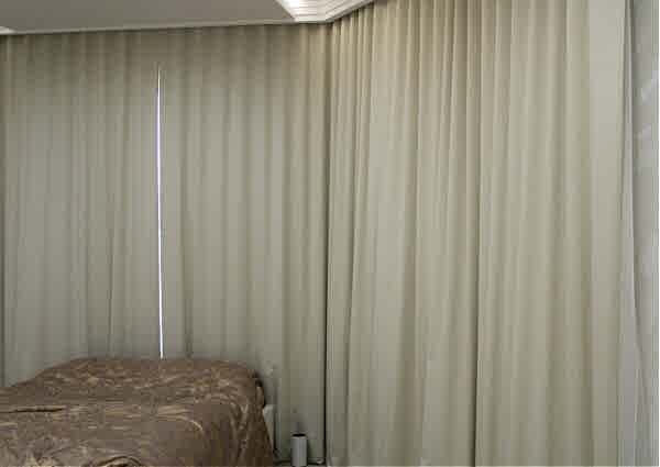 Интерьер спальни мы выполнили в очень светлых практически белых тонах. Наличие эркера в помещении потребовало оформить шторами достаточно большое пространство. Использовали блэкаут молочно-белого цвета с жемчужным отблеском, что позволило, с одной стороны, защитить комнату от яркого света, а с другой стороны, не затемнять её. В результате получилась светлая комната, в которой Пинап элемент интерьера гармонирует друг с другом.